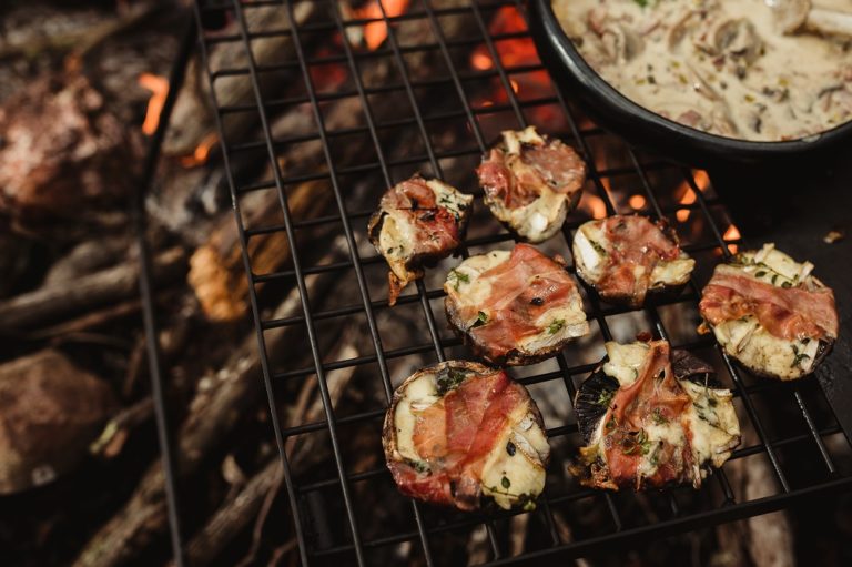 Buttery mushrooms with cheese and salty prosciutto to serve as an elegant side to barbecued meats.