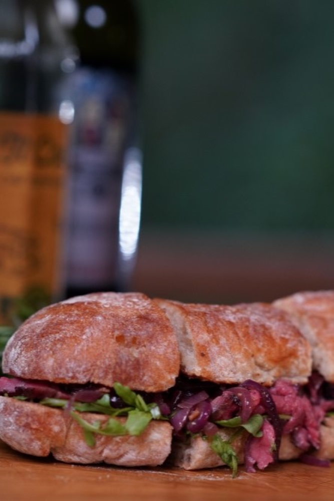 A delicious sweet and spicy twist on the classic steak sandwich. Featuring barbecued steak, a creamy chimichurri and maple sauce and topped with a vibrant