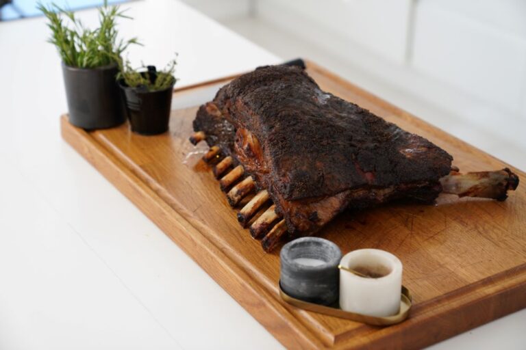 Slow-cooked, tender pork belly, doused with a tangy, spicy barbecue rub.