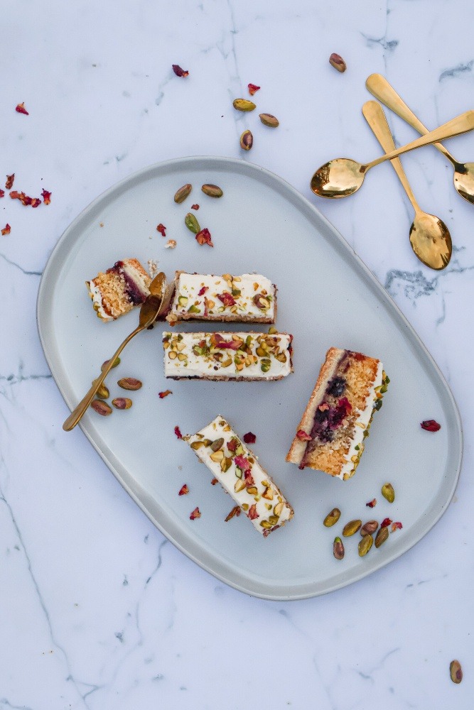 A luscious cheesecake with creamy white chocolate, zesty lime and tropical coconut, perfect for a refreshing indulgence.
