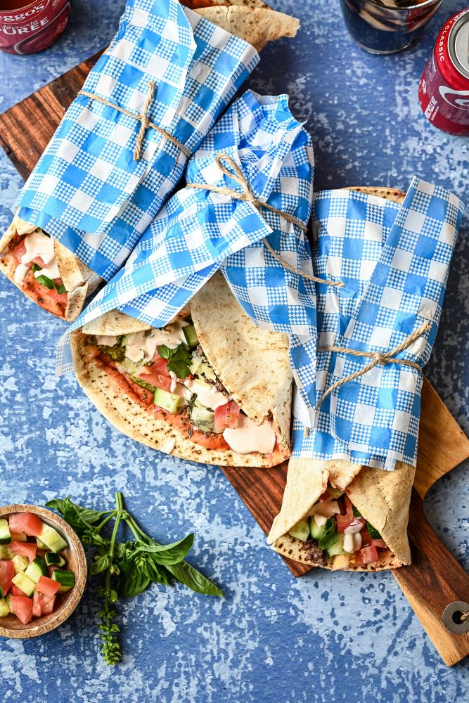 A classic, tasty South American style dish – perfectly seared steak served with a fresh zucchini chimichurri, crispy toasted flatbreads and a little antipasto on