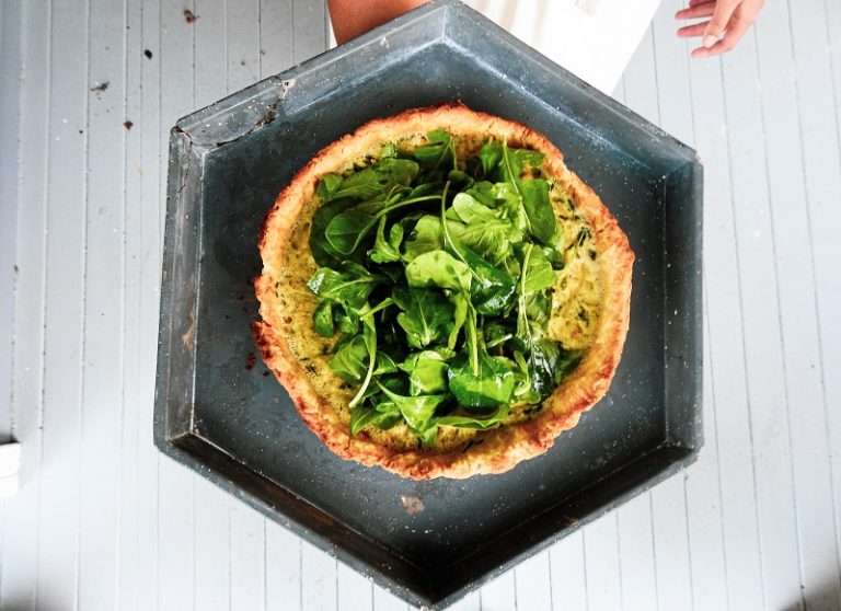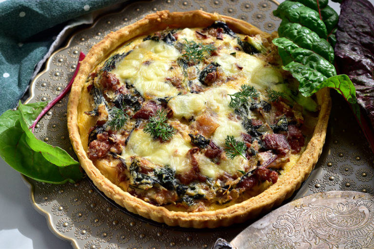 Silverbeet is very easy to grow for a daily supply of healthy greens. Here it’s cooked with onions and bacon in a flaky pastry shell.