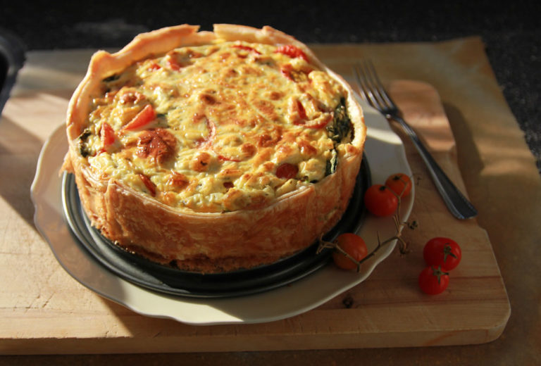 Tasty and cheesy this quiche is deep and delicious. Serves 12 people for a brunch or alfresco picnic.