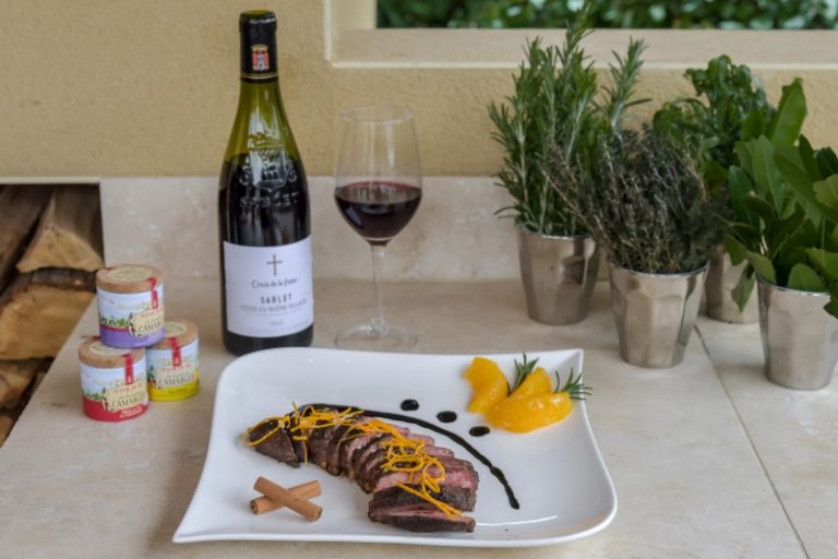 Duck breast cooked with its fat and combined with subtle flavours of honey and spices.