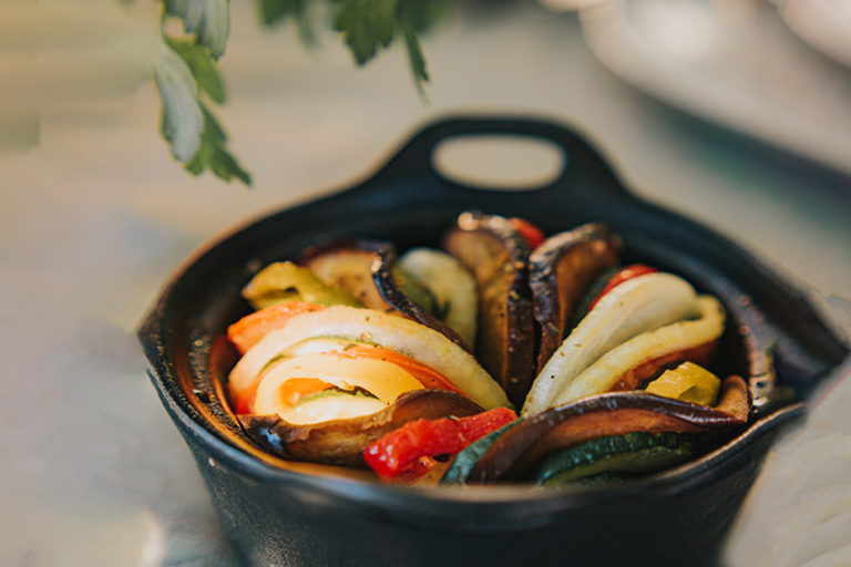 A ‘tian’ is a dish of sliced vegetables, stacked together attractively and baked in the oven with olive oil.