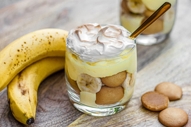This easy, classic Southern dessert is layers of vanilla wafers, ripe bananas, and creamy vanilla custard topped with toasted meringue or whipped cream. It was