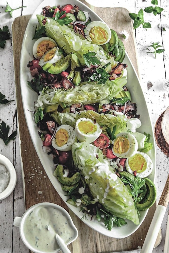 A fun spin on two Southern classics, this recipe combines the flavours of Cobb salad with the serving style of wedge salad.