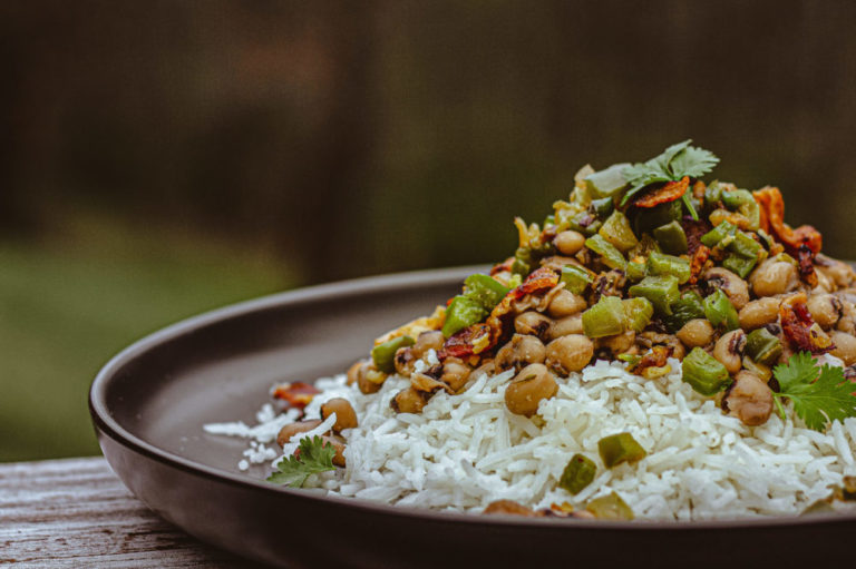 While no one knows the origin of the name of this African American dish, it is served throughout the South on New Year’s Day. It
