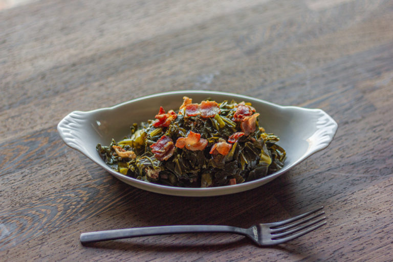 With a nod to the African heritage of the South, greens are a side dish staple. Collards are the most common variety, but this version