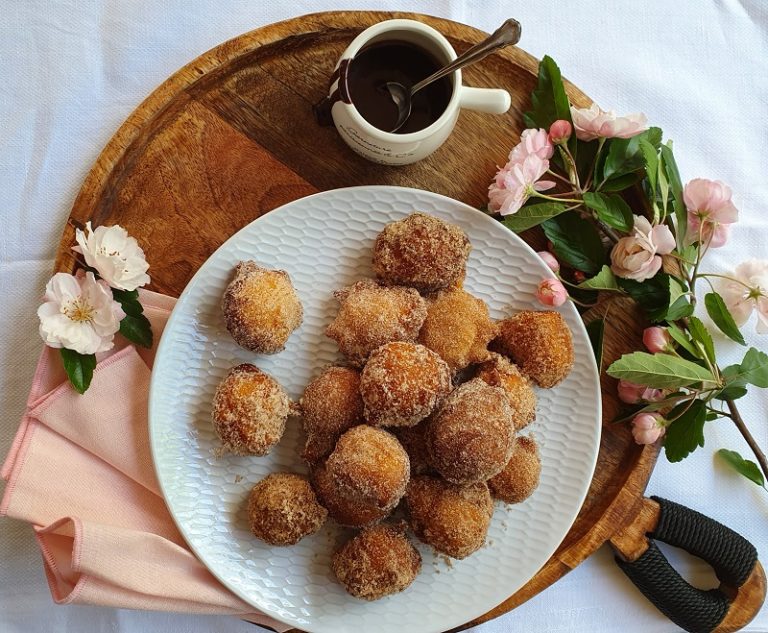 Soft and fluffy, spicy doughnuts covered in cinnamon and sugar are a great way to start your mornings. Drizzle with chocolate sauce, and serve with
