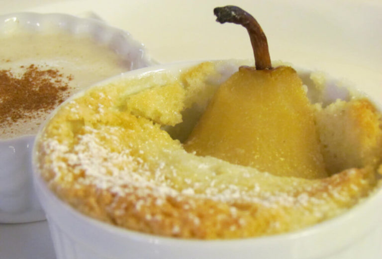 Rich and chocolatey and using tinned pears, this dessert is the perfect warming pudding for a family.