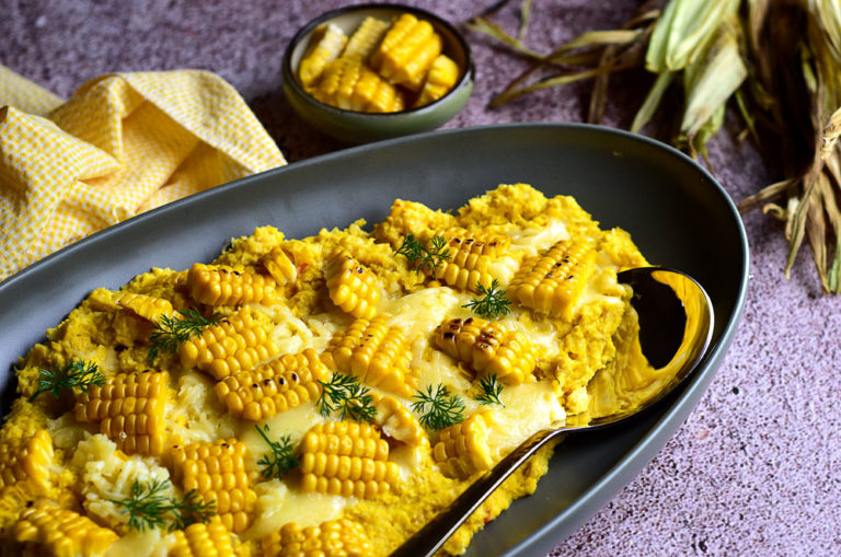 Delicious and creamy, you can start this corn ahead of the rest of the meal prep. All it needs is a quick stir through before