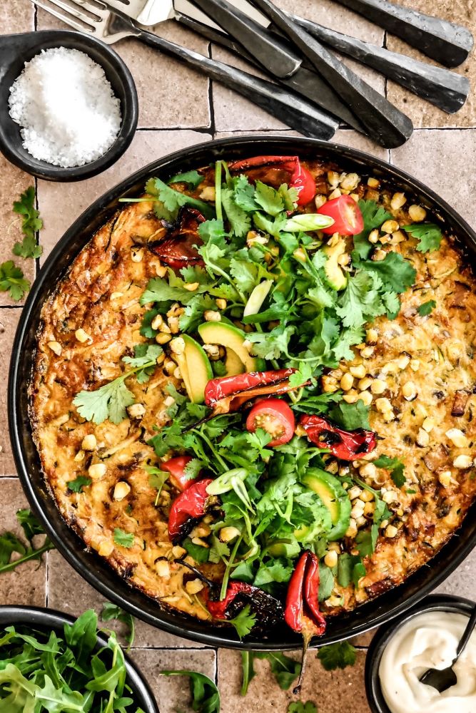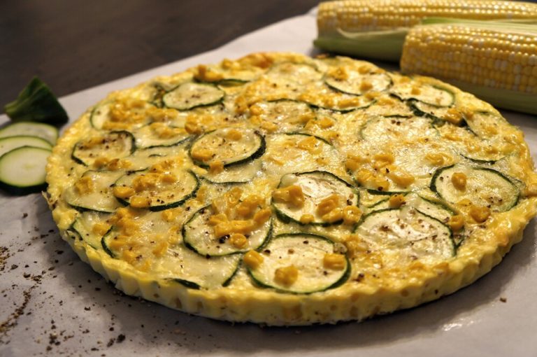 Crustless zucchini and corn quiche is a simple recipe for a weeknight side dish or a Sunday brunch. Fresh zucchini, corn off the cob and