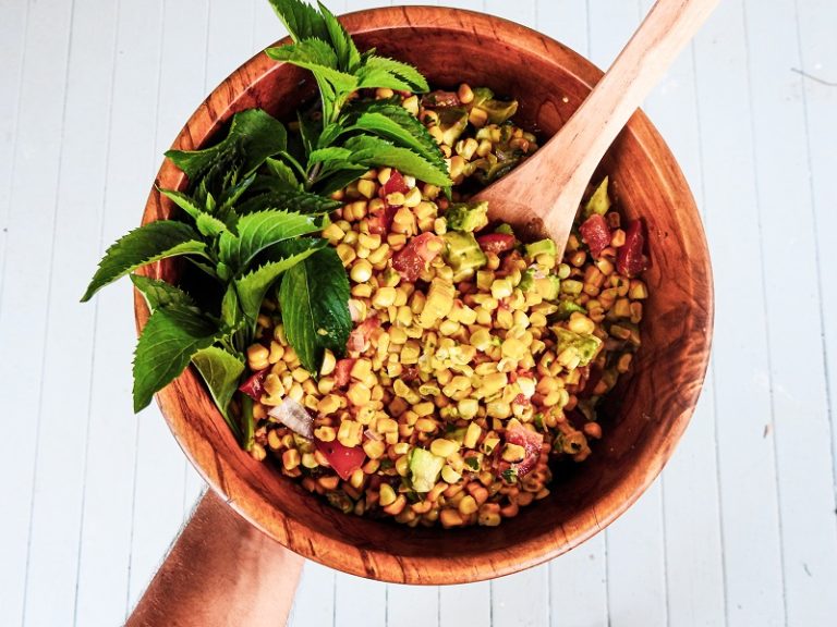 A corn salad with delicious lime juice dressing that can be served on its own or as a side. This is a perfect fit on