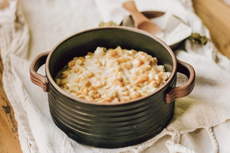 Sweet corn in a delicious creamy mixture – a great side dish and signature recipe of a very sweet Grandma!