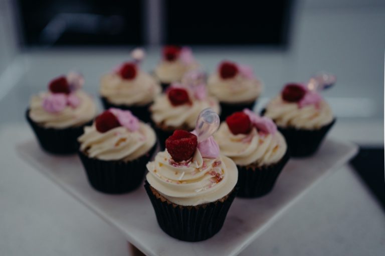 Light and fluffy prosecco-soaked cupcakes topped with creamy buttercream and a hint of fresh raspberry.