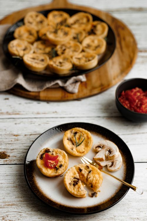 An excellent way of using up chard or spinach growing in the garden! These little individual tarts are perfect as a side or for lunch.