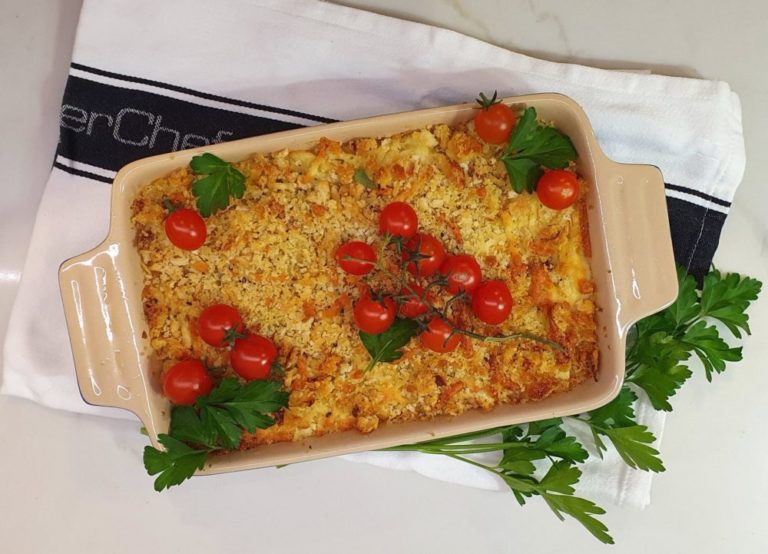 A tasty pasta dish using only staple ingredients from your pantry cupboard. If you don’t have tinned salmon you can substitute tuna.
