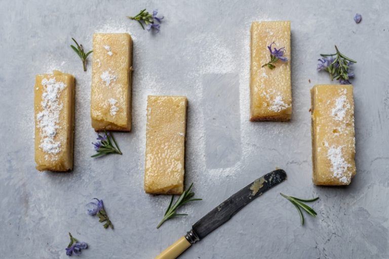 Easy, peasy, lemon squeezy – a zingy custard-like topping on a buttery biscuit base.