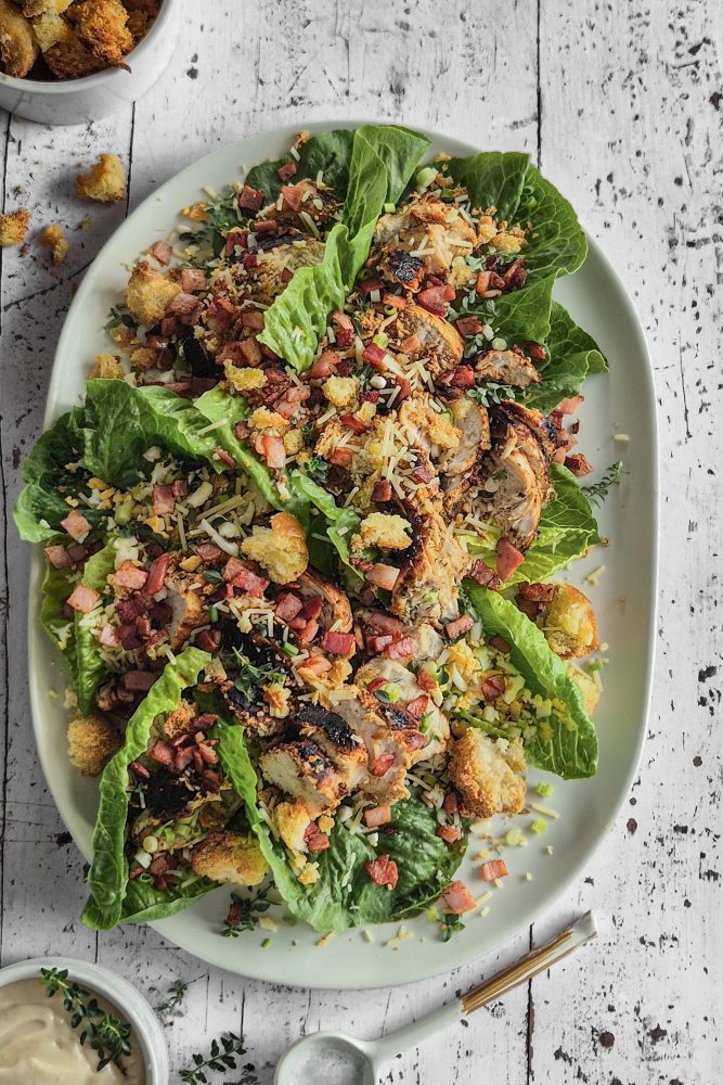 A luxury coleslaw option, topped with a crunchy garnish.