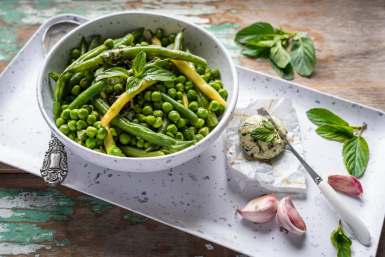 Green veggies served with a garlic and herb butter make an excellent side dish for any meal.
