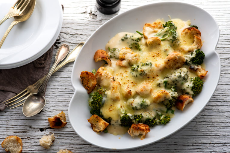 Super tasty broccoli bake. Serve in individual ramekins or in one large serving dish.
