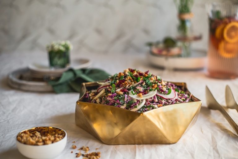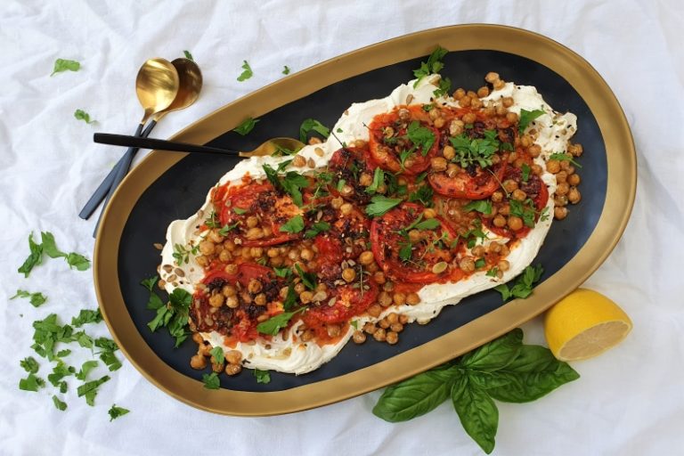 A favourite dish to feed a crowd. Amazing complementary textures and flavours: smooth with crunch, sweet with tart, and spice with soothing labneh! It can be served as an appetiser with crispbread or crackers, or as a side dish with Moroccan spiced roast lamb or chicken.