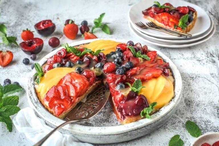 This tasty fruit tart is both easy and pleasing to the eye – no fuss fancy!