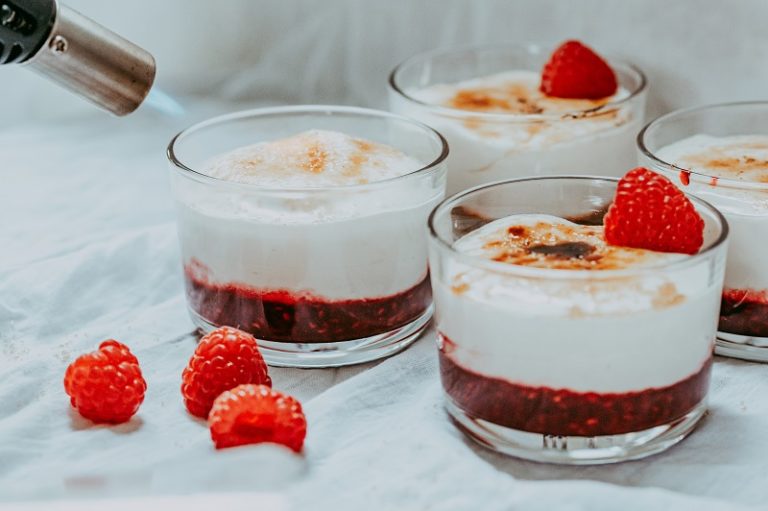 A silky smooth custard topped with a thin pane of crunchy toffee and a base of sweetened fruit. A complete dessert in every serve.