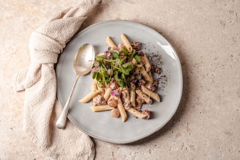 Family Garlic & Smoky Bacon Grape Pasta Grapes add a surprising burst of sweetness to this creamy, smoky creation.