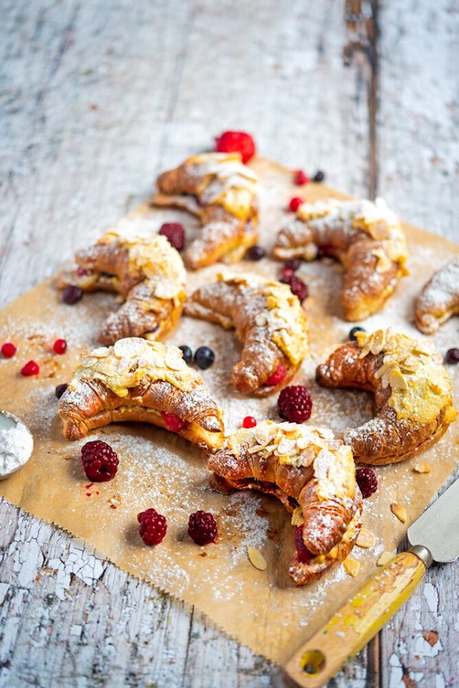 Store-bought croissants soaked with a bourbon glaze and filled with berries and almond cream.