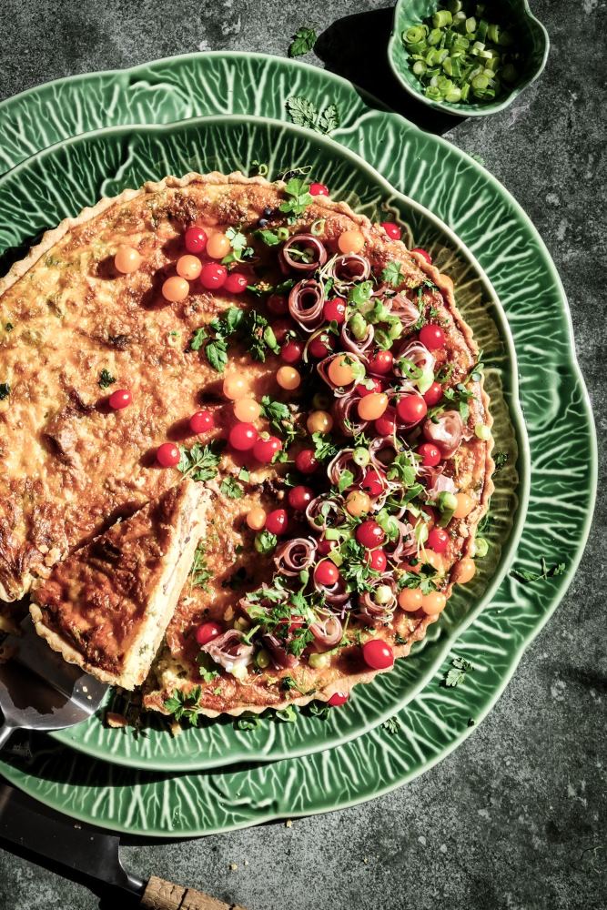 A delicious creamy pastry with sweet pear and salty prosciutto.
