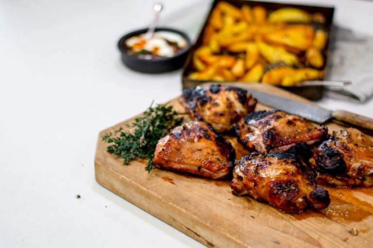 Fire up the coals, toss together a simple marinade and let the kettle barbecue do the hard work. These chicken thighs are oozing with deliciousness.