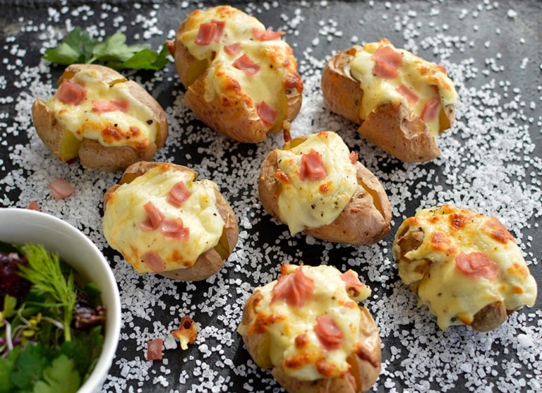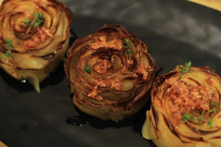 These pretty and delicious potato flowers topped with bacon butter will become your favourite side dish.