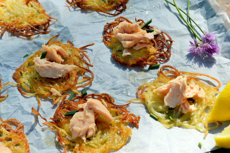 These potato fritters are golden and crisp on the outside, soft and warm on the inside!