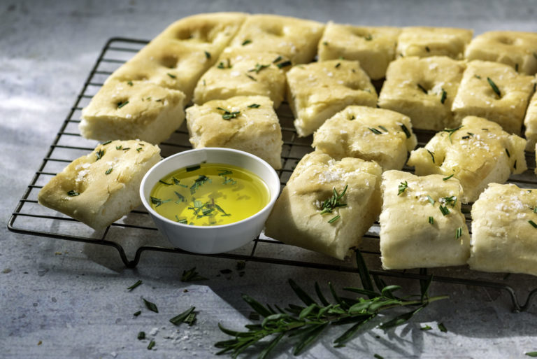 Soft rosemary flavoured flatbread topped with a delicious fresh herb butter – an excellent side for any meal. Leftovers can be toasted and served for