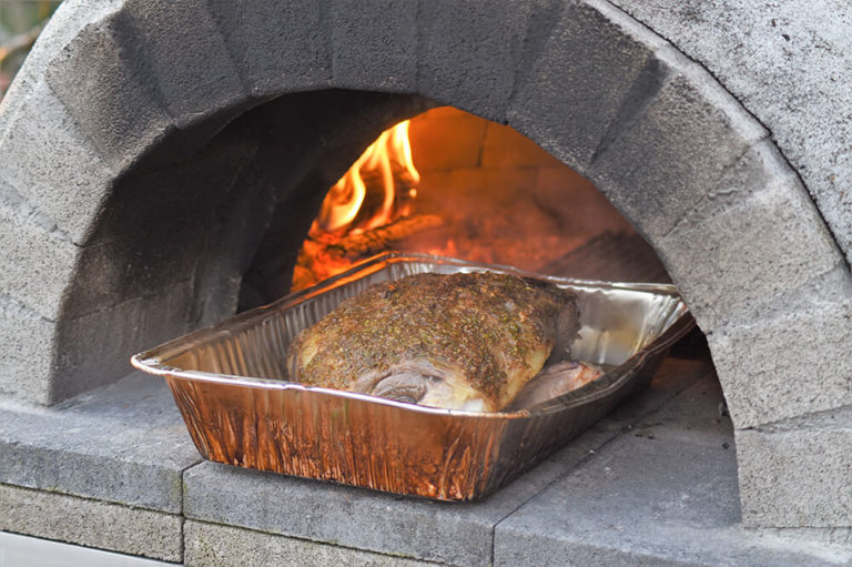 Delicious lamb with rosemary and garlic, slowly smoked in a pizza oven or on a bbq.