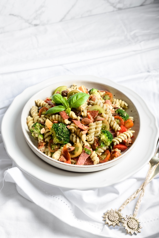 Make lunch out of this meaty pasta salad! It is chock-full of Italian meats, and the lemon in the dressing gives a light fresh flavour.