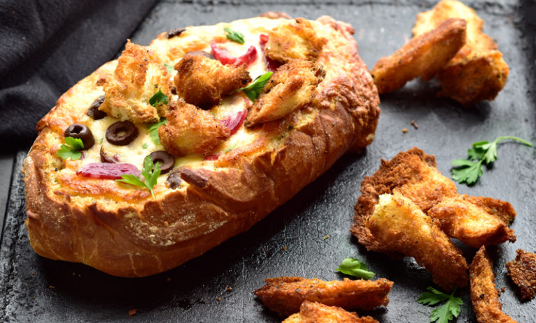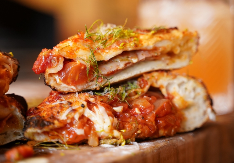Essentially a wrapped, folded pizza, calzone is a delicious Italian street food. Filled with salami and zesty tomato sauce, oozing with cheese and baked until