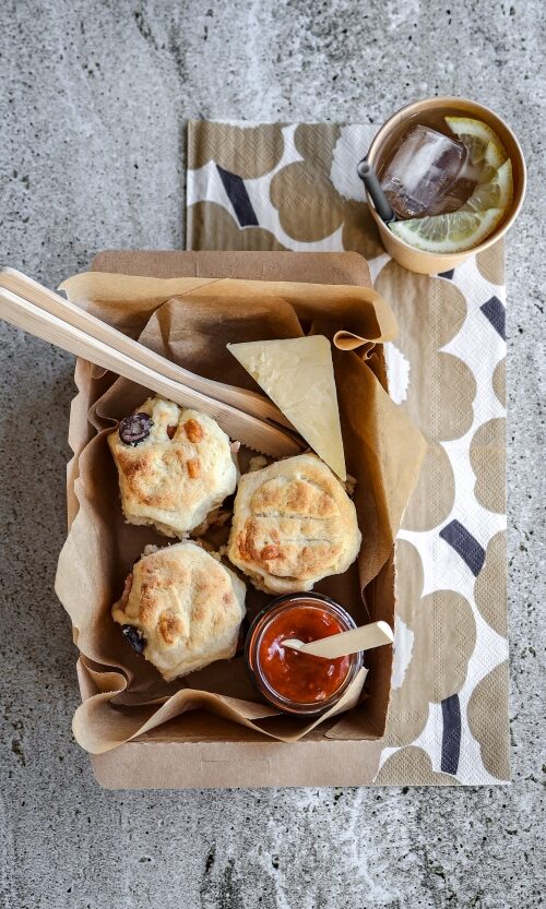 Hearty, cheesy scones, studded with Italian flavours. Served with tangy tomato relish and a wedge of vintage cheddar, these make a delicious light meal or
