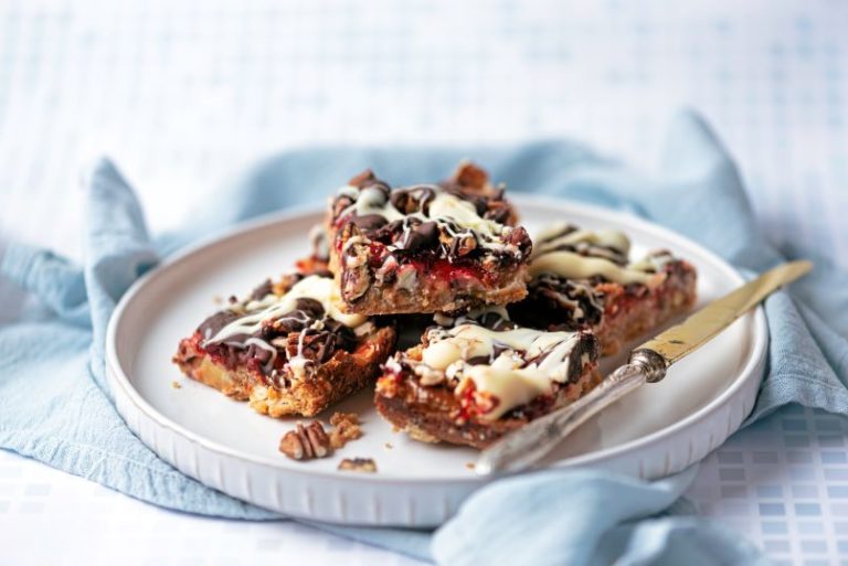 All round favourite peanut butter and jelly blondies with added white chocolate.