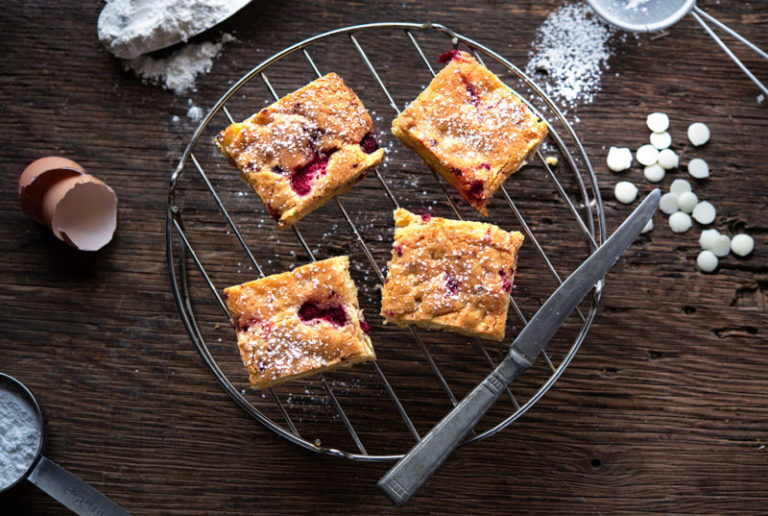 Raspberries, macadamia nuts and white chocolate. All the favourites for an easy dessert or a treat for afternoon tea.