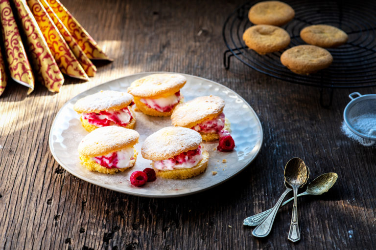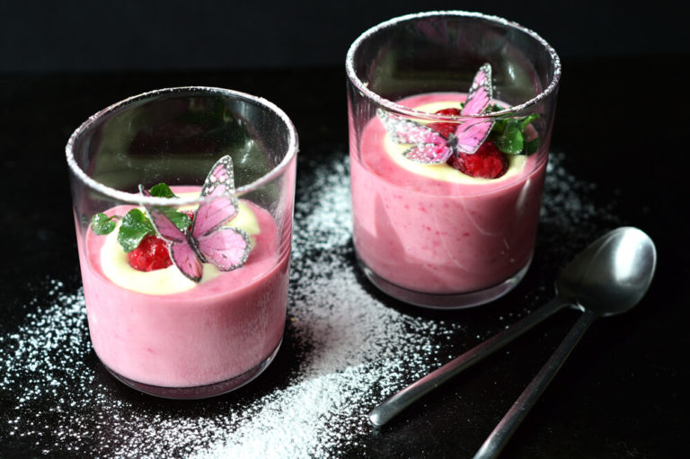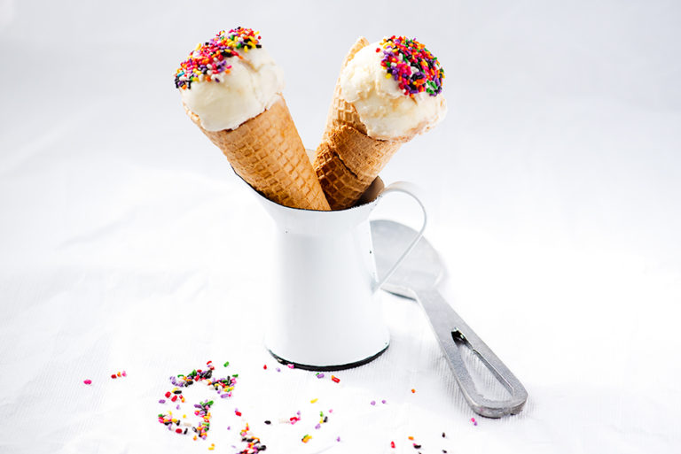 Delicious refreshing dessert with fatless sponge and a healthier ice cream filling that does not require an ice cream churner.