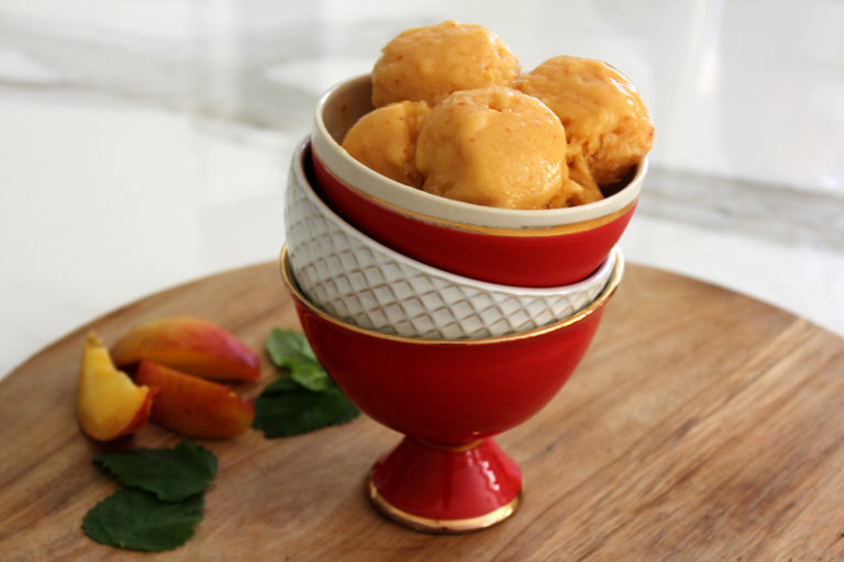 A healthy, sugar-free dessert. The splash of vodka helps to prevent large ice crystals forming, making it so easy to scoop out of the pan.