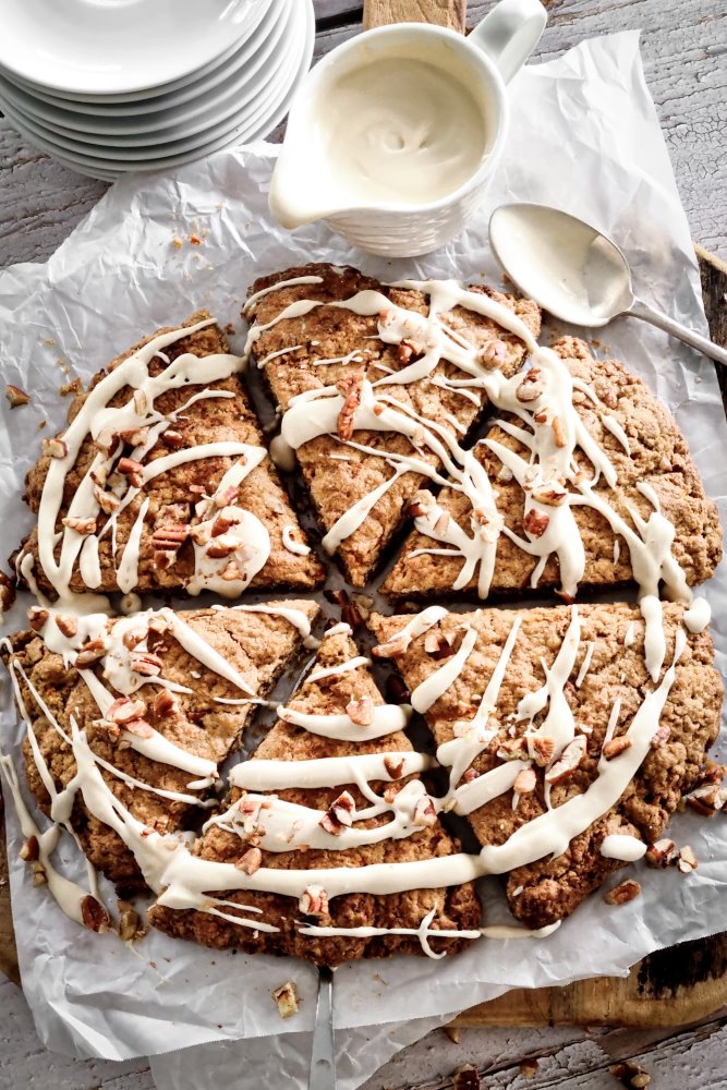 To make the mascarpone cream, whisk cream, vanilla and icing sugar until it starts to thicken. Add mascarpone and whisk again to combine until mixture is thick and pillowy, but not stiff. Generously slather the cooled cake with the icing and top with seasonal fruit.