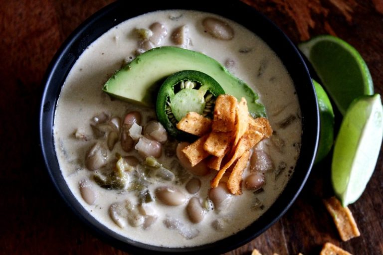 A good way of using leftover chicken, served in a spicy broth with beans for a filling meal.