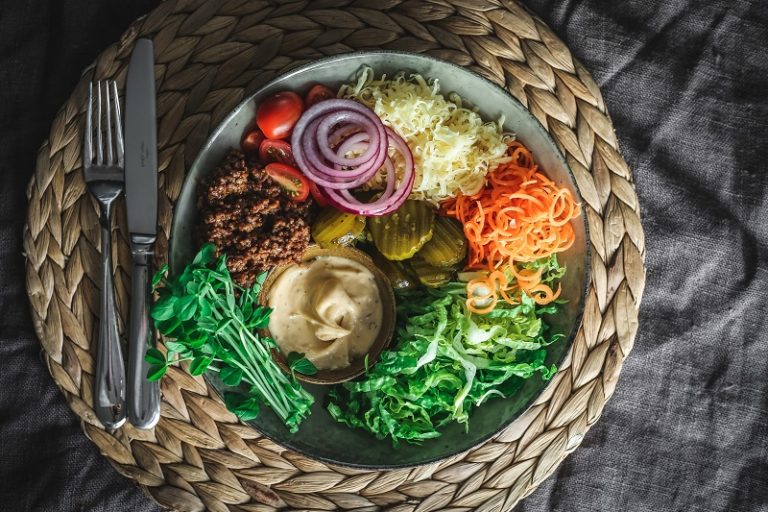 All the flavours of a burger, but without the bun! If you do not want this healthier option, pop the filling on a bun, it
