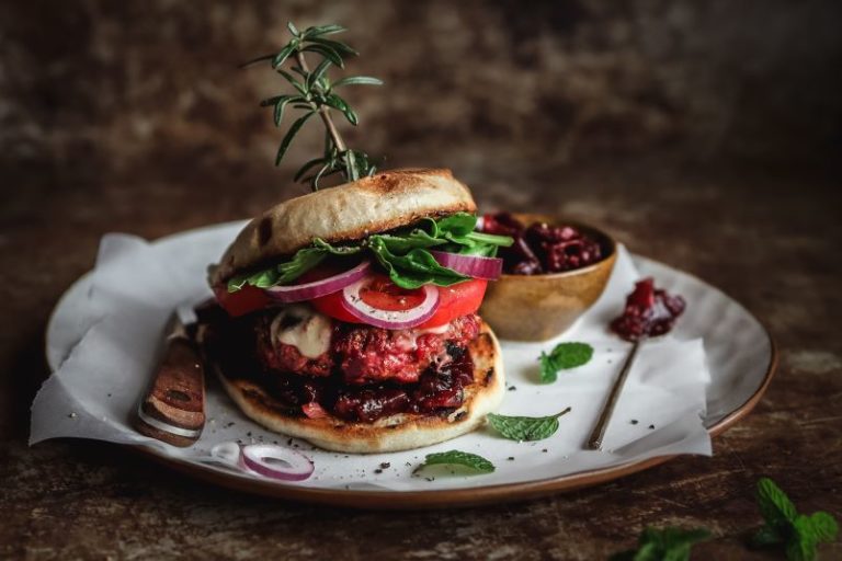 Moist and tender lamb burgers with grated beetroot to add colour and flavour.